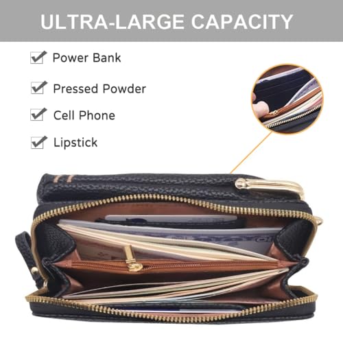 Women Sling Cross-Body Wallet with Mobile Cell Phone Holder, Cell Phone Purse RFID Blocking Wallet Purses for Travel
