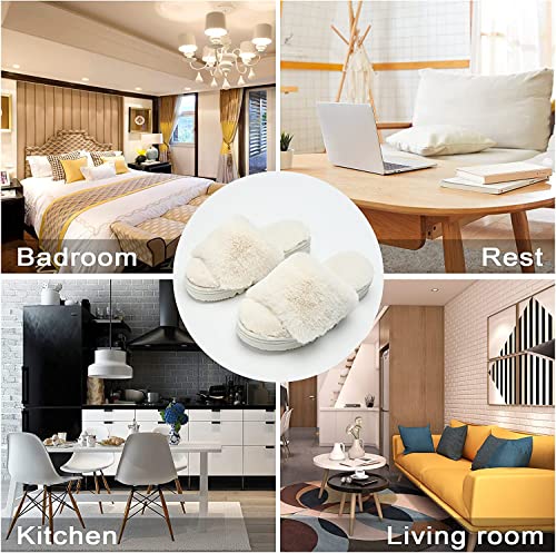 Fluffy Open Toe Slippers for Women Indoor Memory Foam, Comfy Fuzzy Womens Summer House Slippers Non-Slip, supple Faux Fur Slip-on Woman Home Bedroom Slippers