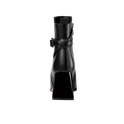 TinaCus Handmade Women's Genuine Leather Ankle Strap Side Zipper Square Toe High Block Heel Short Boots Shoes 5