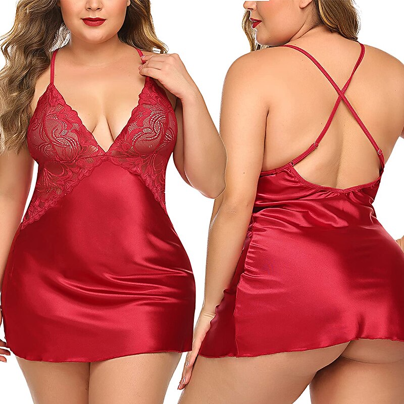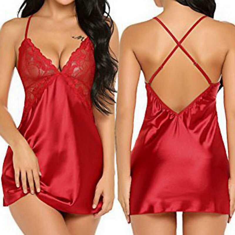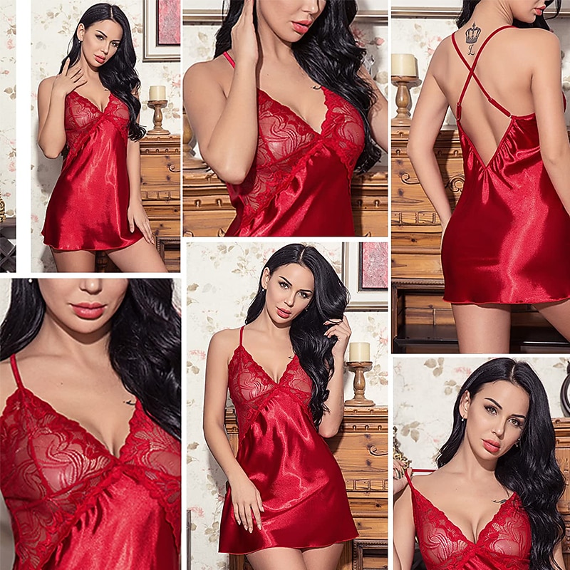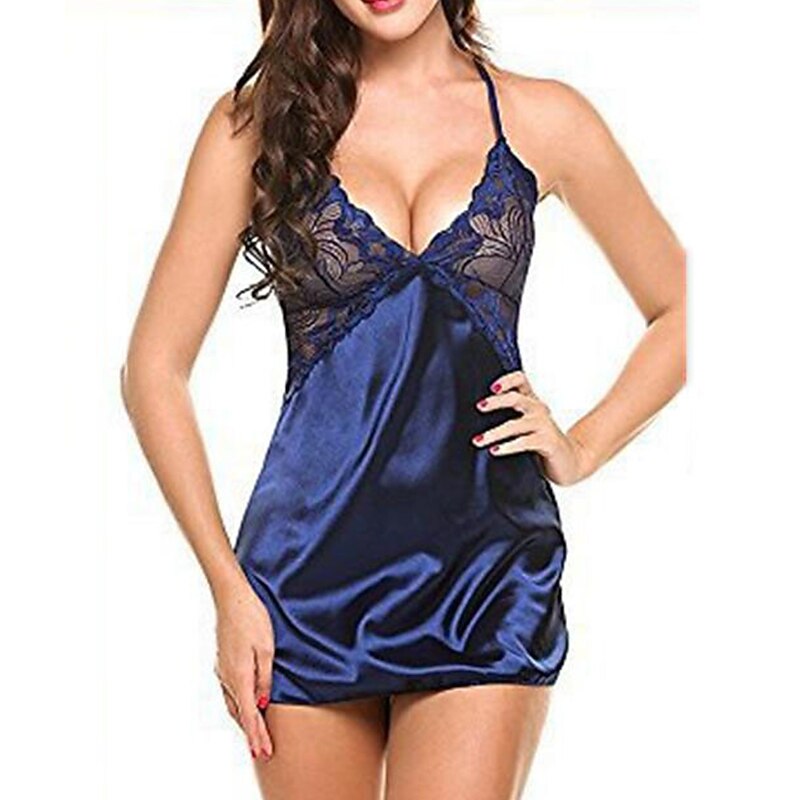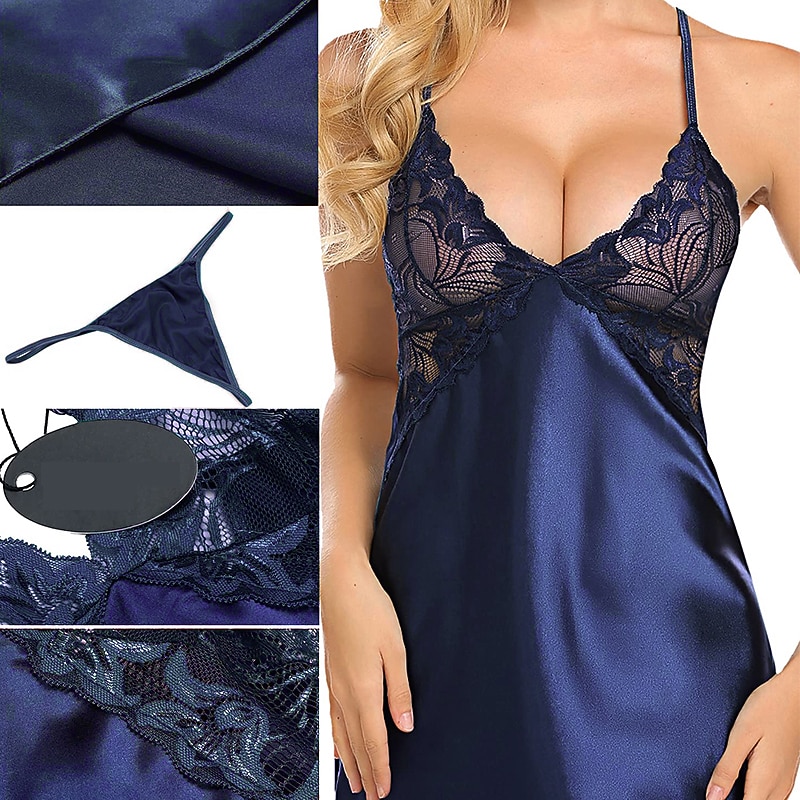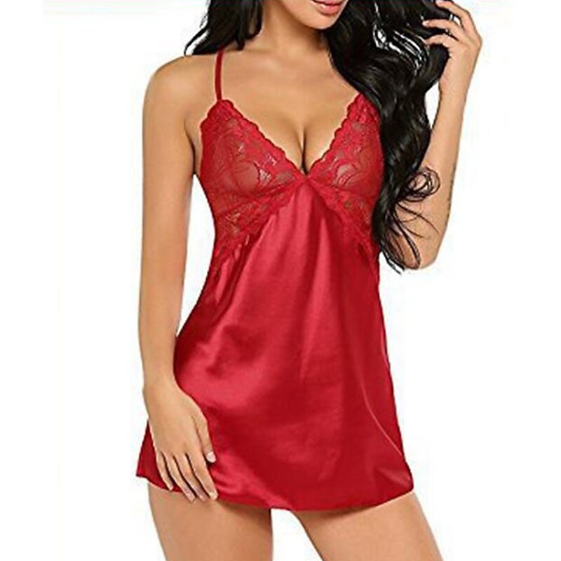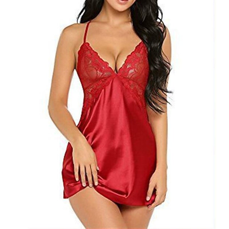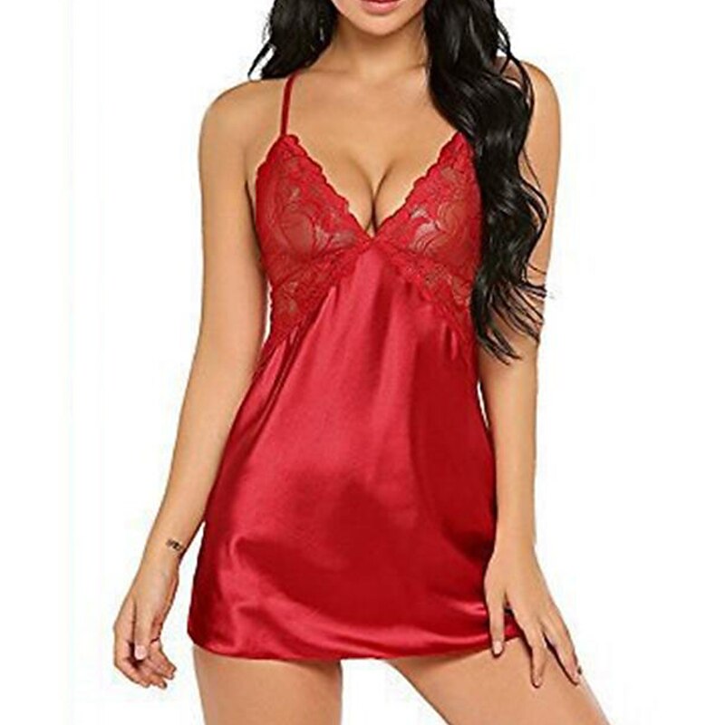 Highlights [Fabric] : Crafted from soft, micro-elastic spandex, this lingerie offers a lightweight and comfortable fit, making it perfect for year-round wear across spring, summer, fall, and winter. The smooth satin finish ensures a luxurious feel against the skin, enhancing its sensual appeal. [Fit] : This seductive slip dress elegantly drapes over the body, providing a flattering silhouette suitable for various body shapes. The adjustable spaghetti straps allow for a customizable fit, ensuring both comfort and style. [Design Highlights] : The nightdress features intricate lace detailing with a peek-through effect on the bodice, adding a touch of sophistication. The delicate lace cups and basic yet chic design make it an essential piece for any intimate wardrobe. [Occasions] : Perfect for daily lounging, bedtime, or romantic evenings, this lingerie piece adds a hint of elegance to any setting. Whether at home or during special romantic moments, it combines luxurious materials with a modern design that enhances the overall experience. [Size Range] : Available in a wide range of sizes from S to XXL, offering a comfortable fit for a variety of body types. The vibrant color selection includes Blue, White, Black, Red, Pink, Gray, Purple, Light Green, and Light Blue, catering to different tastes and preferences.