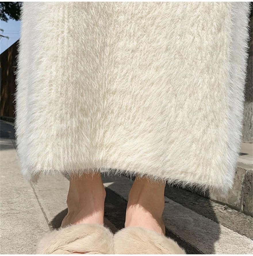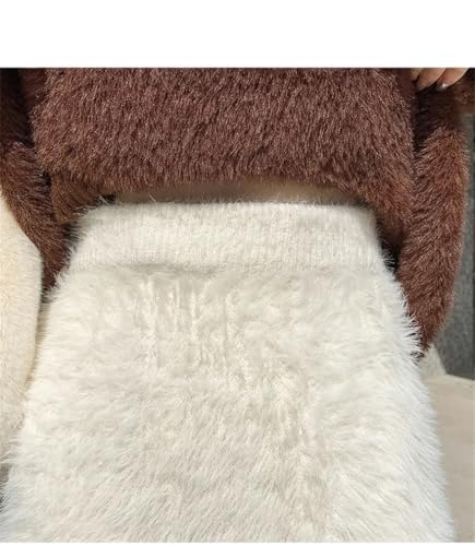 Pulcykp Women Knit A-Line Skirt Fall Winter Midi Skirts Slim velvety snug High Strecth Thick Knit Skirt