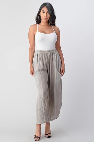 HOT ! Straight Cotton Linen Pants with Pockets (US, Alpha, One Size, Regular, Regular, Taupe)