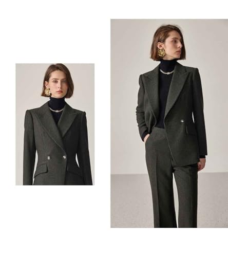 Women's Herringbone Suit Peak Lapel Double Breasted Buttons Tuxedos (Jacket+Pants) for Homecoming Interview 7