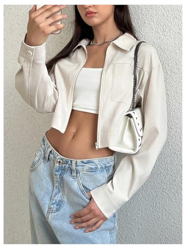 Fabric type: 100% PolyesterCare instructions: Machine WashOrigin: ImportedFabric: Made from a breathable and lightweight fabric blend that feels tender against the skin, offering comfort for all-day wearFeatures: Cropped zip up jacket for women, with pockets, long sleeve, collared, solid color, fall jacket outwear, simple yet fashionOccasions: Nice choice for daily wear, office work, casual weekend, going out, streetwear, dating, vacations, hanging out with friends, shopping, airport travel, etcStyling Options: Pair it with your baggy jeans, cargo pants, sweatpants, camo pants, mini skirt or denim shorts to complete the edgy lookSize: Please check our size info in the product description below or the last picture before ordering Perfect for everyday use. supreme materials and excellent craftsmanship ensure long-lasting durability.