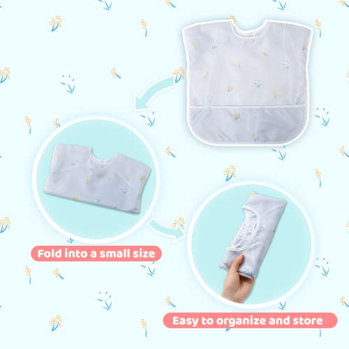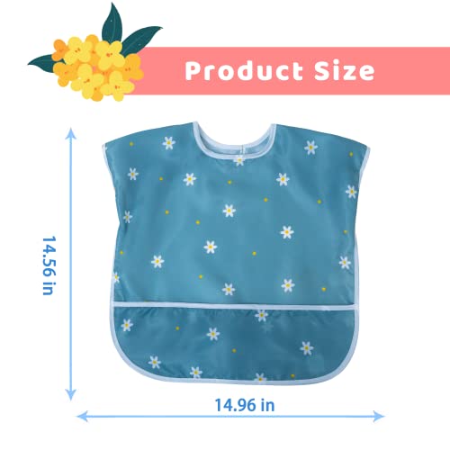 Little Dimsum Toddler Feeding Smocks Baby Waterproof Bib with Crumb Catcher Pocket Short Sleeve Adjustable Baby Bib, Pack of 2 Colors Flower Sets