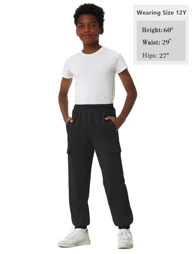 Fabric type: 80% Polyester, 20% CottonCare instructions: Machine WashOrigin: ImportedClosure type: DrawstringSoft and pleasant: The boys cargo sweatpants feature a premium polyester cotton blend, providing a cozy feel, lasting durability, and breathable comfort. For colder weather, a fleece lined option is available to keep kids warm4 Pockets: The boys cargo sweatpants with 4 pockets, 2 side pockets for conveniently storing items like a mobile phone and keys, and 2 cargo pockets providing ample storage space to free your handsLoose Fit: These boys full length cargo sweatpants feature elasticated ankle design, high waisted with an elastic waistband and hidden drawstring fixed at the back. Available in regular and fleece lined versions for added warmth and comfortDurable and Long lasting: These boys cargo sweatpants combine the durability of polyester with the softness of cotton, offering both wear resistance and comfort. They withstand active play and rough use without easily getting damagedVersatile: The boys cargo sweatpants are perfect for casual, daily wear, athletic, workout, and school. Perfect to paired with any tops, such as casual sportswear, T shirts, loose jackets and hoodies Perfect for everyday use. first-class materials and excellent craftsmanship ensure long-lasting durability.