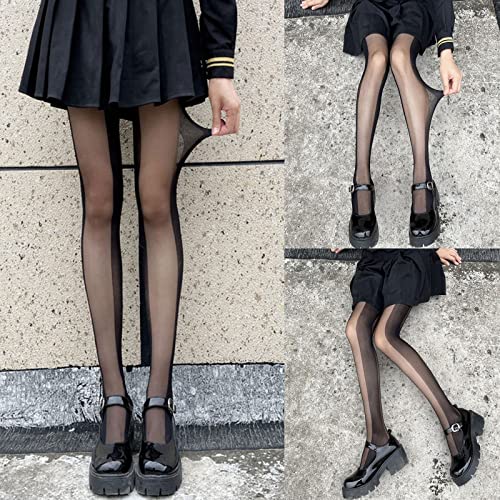trending ! Women Sheer Pantyhose Black Side Vertical Stripe Stitching Tights