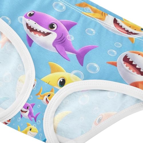 Colorful Cartoon Sharks Blue Toddler Underwear, Girls Briefs, 2T–8 Years