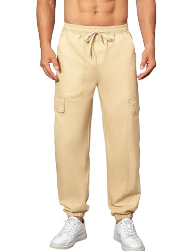 trending ! YYA Men's Streetwear Cargo Pants with Flap Pockets & Drawstring Elastic Waist Casual & Techwear Joggers Khaki L
