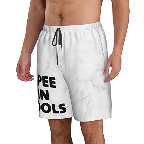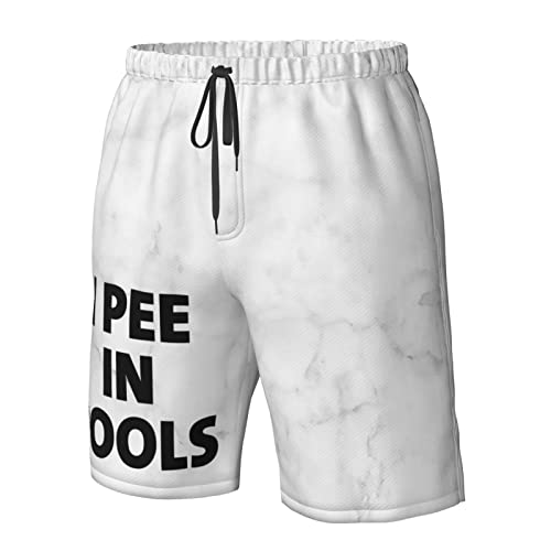 trending ! I Pee in Pool Men's Swim Trunks swift Dry Beach Shorts Swim Shorts with Mesh Lining Swimwear Bathing Suits White-L