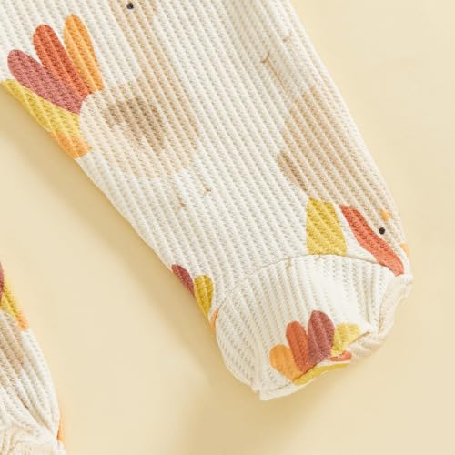 Userdefined Newborn Baby Girl Thanksgiving Halloween Outfit Ruffle Butt Romper Turkey Onesie Footie Fall Winter Clothes