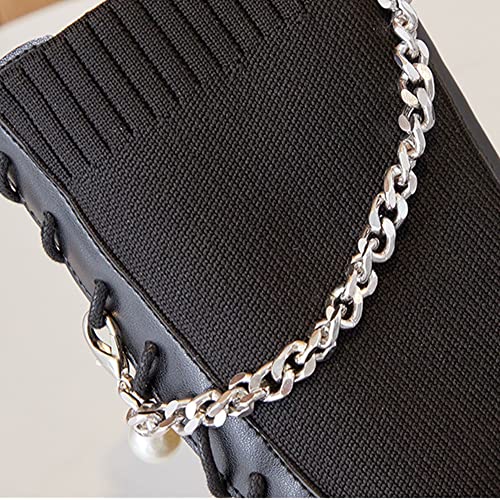 • Design: Leather and knitted fabrics are pieced together,Exquisite Chain, fashion glossy leather design.