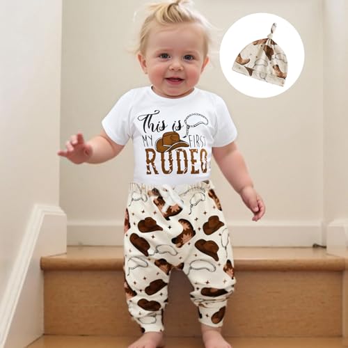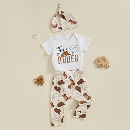 My First Rodeo Outfit Western Baby Boy 1st Birthday Clothes Short Sleeve Romper Pants Hat Set Newborn Cowboy Outfits