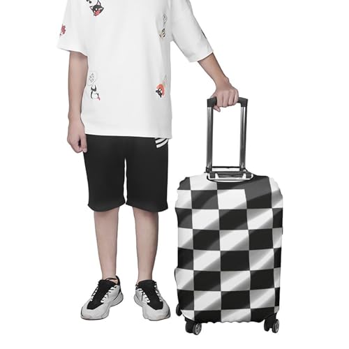 【 Black White Race Checkered Flag Luggage Cover】Fit quickly and easily in seconds. Durable and washable, 4 sizes available to fit almost any luggage. S: fit 19-21 inch luggage, M: fit 22-24 inch luggage, L: fit 26-28 inch luggage, XL: fit 30-32 inch luggage.【Easy Zipper Access & Installation】Features convenient zipper closures on the sides for side handles and a large top opening for the telescopic handle. Double-stitched all over, full of stretch and high elasticity, ensure your suitcase stays shut during the trip.【Superior Scratch & Dust Protection】Crafted from thick, durable material to shield your suitcase against scratches, dust, dirt, and minor impacts during transit and storage, keeping it looking new longer.【Washable & Reusable Suitcase Cover】Made from high-quality, stretchable fabric that's easy to clean. Simply machine wash for repeated use, offering a sustainable and economical travel accessory.【chic Luggage Protector】Available in various vibrant colors and patterns. Easily identify your bag at baggage claim while adding a personal touch and safeguarding your luggage from wear and tear. Perfect for everyday use. first-class materials and excellent craftsmanship ensure long-lasting durability.