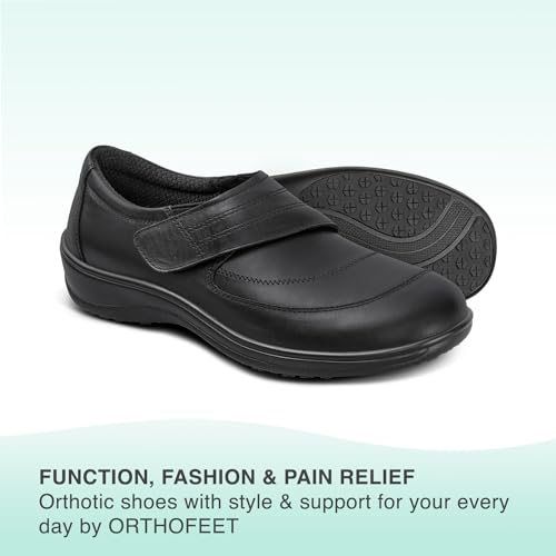 Origin: ImportedSole material: RubberOuter material: LeatherClosure type: Hook & LoopEmily keeps life healthy & comfortable with a tailored leather upper thatβs soft and durable and casual style that's versatile for everyday wearOne pull of the monk strap closure and this classic casual style opens wide for easy on & off and adjustability to your special foot shapeOrthofeet shoes have unmatched cushioning and benefit 20+ conditions including foot and heel pain, plantar fasciitis, diabetes, arthritis, bunions, achilles tendonitis, hammer toes, and more.Includes premium orthotic insole and arch booster in every shoe for a customized pressure-free fit with innovative comfort, arch support, and advanced pain relief.Fit & Sizing: True to size. Orthofeet shoes are designed with soft leather upper offering a non-binding fit Perfect for everyday use. first-class materials and excellent craftsmanship ensure long-lasting durability.