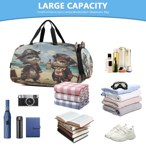 YETTASBIN Sport Travel Duffel Bag for Girls Boys, Funny Cat Large Waterproof Weekender Overnight Bag, Detachable Shoulder Strap Gym Bag with Shoe Compartment & Wet Pocket