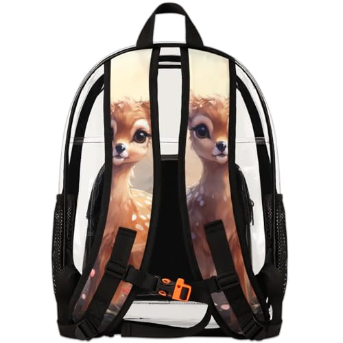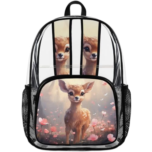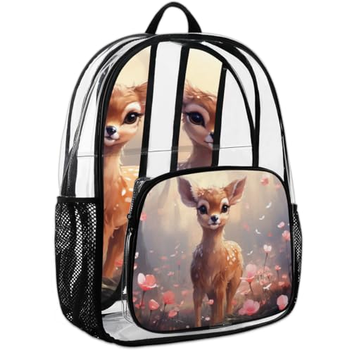 attractive Flowering Sika Deer Clear Backpack Stadium Approved PVC Backpacks for Adults Heavy Duty Clear Bag for Work Security Travel College