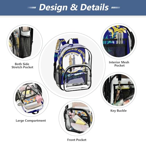 Travel Clear Bags for Women Kentucky Flag Boys Backpacks for Girls See through Shoulder Bag