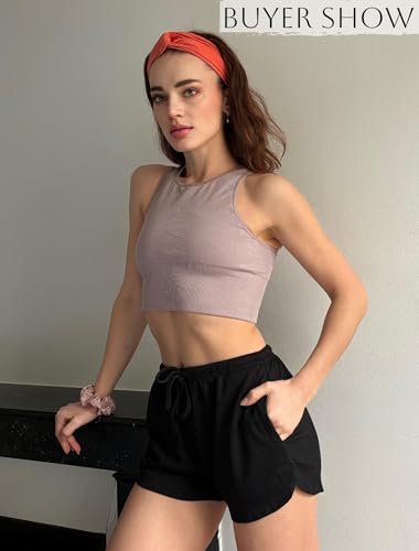 Ekouaer Womens Waffle Knit Pajama Shorts supple Drawstring Lounge bottoms Casual Workout Shorts with Pockets