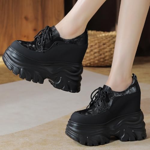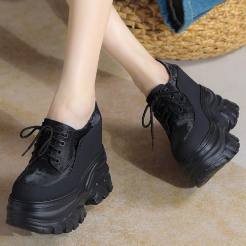 trending ! Women Spring Autmun Height Increasing Hidden Heel Platform Wedges Color Block Lace-Up Genuine Leather Silk Casual Shoes 50630