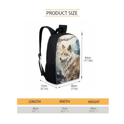 Size: 11 x 5.1 x 17.3 inch/28 x 13 x 44 cm(L x W x H). Suit for 5+ Years Old.Feature: 3D animal wolf print backpack, multiple colors to choose from. 2* side mesh pouch,1* main large zipper pocket inner. Can be hold laptop, ipad, books, wallet, phone and other daily stuff. Side pockets: hold water bottles, keys, other small items.Material: made of polyester material, resilient, lightweight, easy to store and environmentally friendly. Sponge mesh material to ease your back and shoulder,adjustable padded shoulder straps for cushioned comfort.Occasion: This wolf backpack for kids suit for school, college, work, weekend getaway, travel, hiking, camping, hunting, weekend getaway, hunting, trekking, cycling and other outdoor activities.Beast Gift: It is great backpacks gift for kids, boys, girls, elementary students, junior, middle students, high school students, college opening gift. Perfect for birthday, thanksgiving, christmas, valentine for your best friends/ kids/ family. Perfect for everyday use. supreme materials and excellent craftsmanship ensure long-lasting durability.