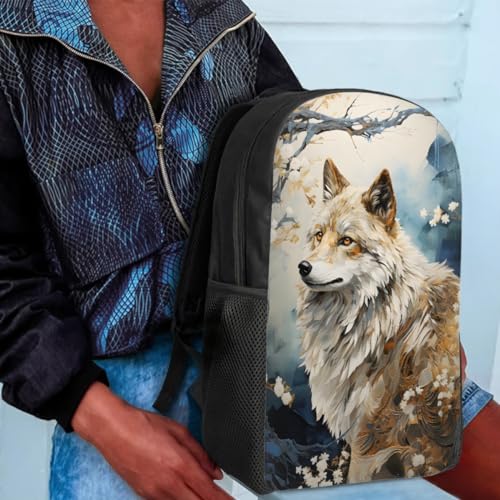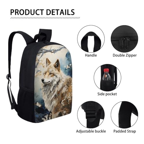 ENLACHIC 3D Wolf Backpack for School, Boys Girls Cool Animal Print School Bag tough Casual Daypack College Bookbag,Wolf Floral