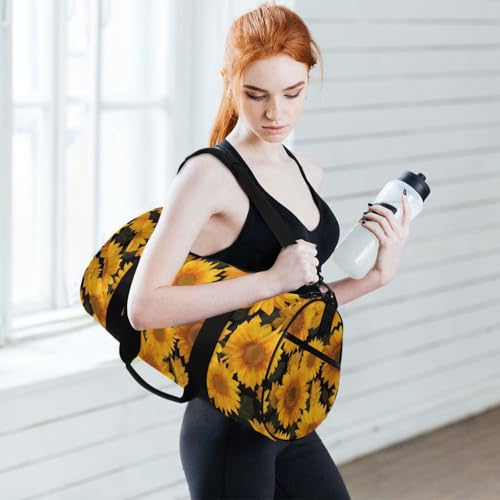 Sunflower Sports Duffel Bag Barrel Gym Bag with Large Main Compartment, Side Pocket and Zippered Pouch Full Print Design for Fitness Short Trips and Outdoor Sports