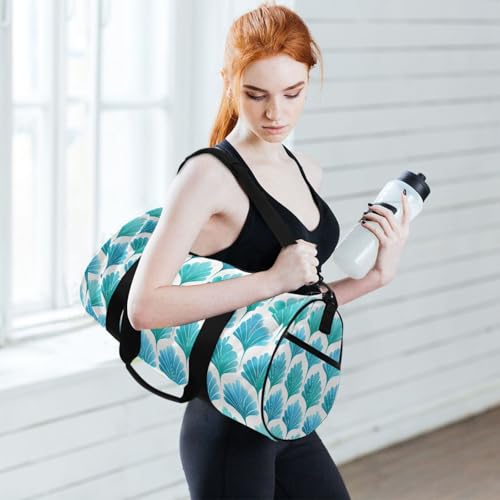 Green Leaves Sports Duffel Bag Full Print Barrel Gym Bag with Side Zipper Pocket and Inner Compartment, tough Lightweight Fabric for Sports, Training, Travel and Outdoor Use
