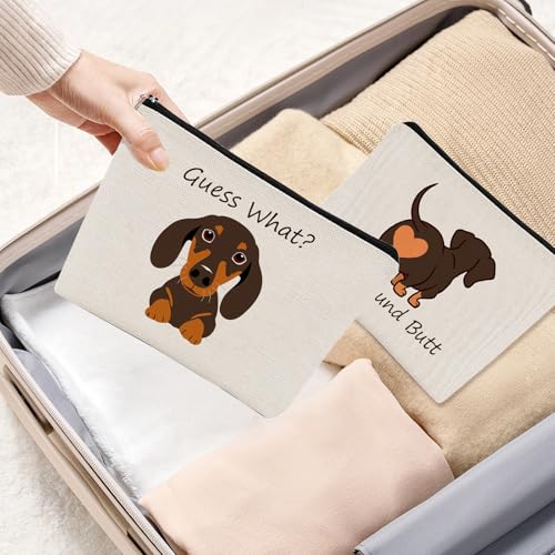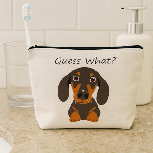 Suitable Size: 7.08” x 9.05” (18cm x 23cm), this dog makeup bag offers generous space without bulk. Enough capacity for many ordinary items, such as lipstick, wipes, lip balm and so on, portable easy to carry with you and store in your handbagPremium Material: The cosmetic bag is made of durable canvas fabric and featuring a smooth-gliding metal zipper, this lightweight yet rugged bag withstands daily wear while maintaining a luxe, easy-to-clean finishSpecial Design: Featuring an one-of-a-kind dachshund pattern with vibrant, eye-catching details, this dachshund makeup bag combines whimsy with practicality. Reinforced with double-layer fabric for extra durability and a smooth-gliding zipper, it’s as sturdy as it is charmingDachshund Gifts: This unique dachshund gift is perfect for birthday, Thanksgiving, Christmas, New Year, Valentine's Day for dachshund lovers, girlfriends, family, friends and colleagues because it combines humor, practicality and heartwarming designMulti-Purpose Versatility: This small bag can be used as makeup bag, toiletry bag, day bag, travel organizer, coin purse, carry-on bag, pencil case, purse, mobile phone bag, glasses bag, medicine bag, etc. Perfect for everyday use. superior materials and excellent craftsmanship ensure long-lasting durability.