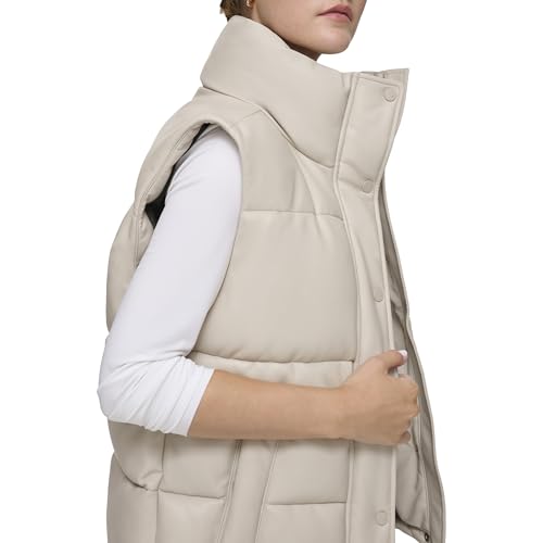 Andrew Marc Women's Funnel Collar Faux Leather Puffer Vest