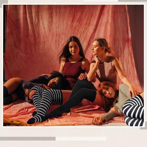 Fabric type: Mainly cottonCare instructions: Hand Wash OnlyOrigin: ImportedAmple Package of Plus Size over the knee high socks: you will get 4 pairs of different styles of plus size women thigh high socks, which are white, black, black and white stripes, and black and gray stripes; This provides a variety of choices for your daily wear, and the fashionable style makes you stand out in life or at parties; The design of multiple pairs is also convenient for you to change or share with friendsMeet Plus Size Needs: our high thigh socks are designed with plus size in mind! The size of our striped thigh high socks are enlarged and widened, which is suitable for thick thigh womens; The plus size thigh high stockings are about 22.8'' long, the stretched length is about 29.5, fits thighs 18-35 inchesBreathable High Elastic: our plus size long thigh high socks are made of soft, snug and skin friendly cotton material, ensuring softness, comfort and breathability, and can meet the needs of long term wear; Soft and high elastic material fits snugly to your calves and thighs; Make your legs look longer without suffocating your thighsMultiple Fashion Matches: striped oversized knee high socks can be worn in a variety of ways; You can roll them up like cute oversized leg warmers or fold them into over knee high socks; They can be easily matched with various uniforms, shorts, T shirts, mini skirts or high boots; They are a must-have item in the wardrobe of curvy girls; You can wear our extra-long over the knee high socks for yoga, cosplay or leisure at homeSpecial Gift and Choice for Plus Size Women: our women's thigh high plus size socks are the special gift and accessory for Birthdays, Mother's Day, Christmas, Halloween, New Year or Thanksgiving; Drip sultry and radiate confidence with these knitted thigh high socks and plus size women deserves them Perfect for everyday use. supreme materials and excellent craftsmanship ensure long-lasting durability.