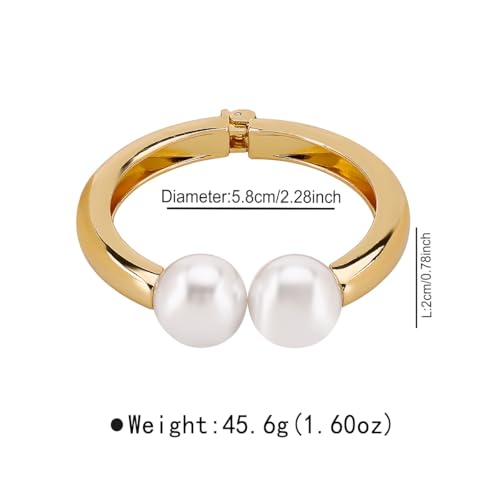 MIFYNN Chunky Gold Pearl Bangle Bracelet for Women Trendy Golded Plated Cuff Bangle Open Wide Bracelet Statement Bracelets Jewelry for Women