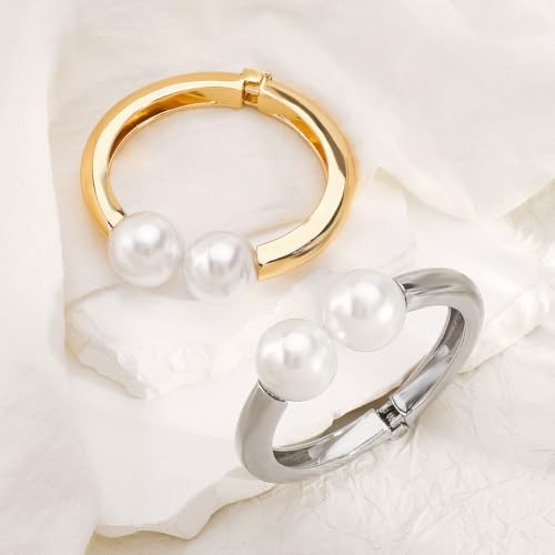 Material: AlloyMetal type: No Metal TypeClasp type: Hidden Safety ClaspGem type: No gemstoneGold Pearl Bangle Bracelet:This gold thick bangle bracelet is open wide cuff design,hinge design makes it easy to put on and take off,and perfect fit for your wristsMaterial:Gold bangles for women are made of high-quality zinc alloy,gold plated,high polished surface,robust and long lasting color.Lead free and Nickel free,hypoallergenic and not easy to fadeSize:The bangle have 1 sizes,the thickness is 0.78'',weight is 46g.Its opening diameter is 2.28'',it fits most women and doesn't fall off easilyPerfect Present:This Pearl Bracelet will be a special bracelet for women . You can wear it for any occasion, such as Halloween, Christmas, Valentine's Day, Mother's Day, birthdays, anniversaries, homecoming, graduations, engagements, or special partiesBest Service:If there are any problems with the purchase, please feel free to contact us, We will reply to solve the problem within 24 hours Perfect for everyday use. first-class materials and excellent craftsmanship ensure long-lasting durability.