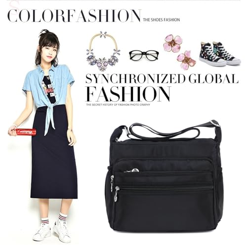 Waterproof Polyester Crossbody Bag for Women, Multi-Pocket Lightweight Shoulder Purse, Large & Medium Sizes for Travel