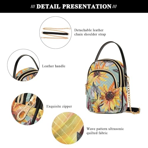 Womens Shoulder Handbags Tote Bag Quilted Purses for Women Sunflower Print Satchel for Travel Work,Multi1