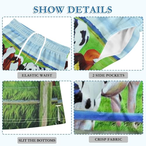 CHIFIGNO Grassland Cows Pull-On Boys Casual Shorts Elastic Waist Youth Boys Thick Summer Shorts with Pockets XS