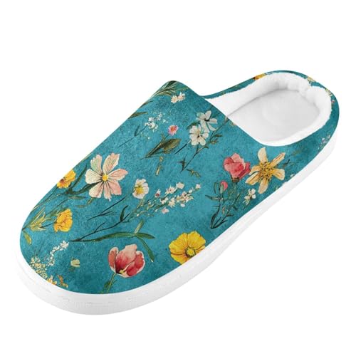 trending ! JUNZAN Retro Oberonia Turquoise Mens Cotton Slipper Wide Memory Foam Indoor Shoes for Hotel Funny Presents 6-7