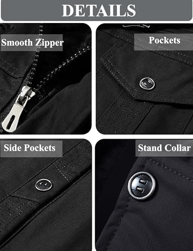 - Windproof: Mens fleece lined jacket is designed with a full zipper and button closure, stand-up collar and ribbed hem & cuffs to keep out the cold.