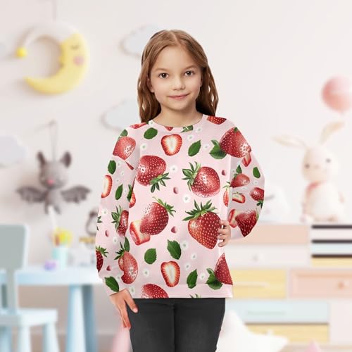trending ! JUNZAN Sweet Strawberries Fruit Blush Little Kids Sweatshirt Hoodie Fleece Hoodies for Girls Athletic 4T