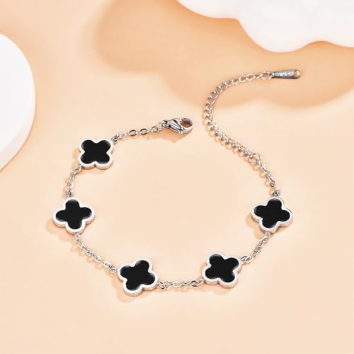 Clover Bracelets for Women 18k Gold Plated 4 Leaf Clover Bracelet Gold Silver Black White Red Cute Lucky Bracelets Jewelry Gifts Trendy for Women