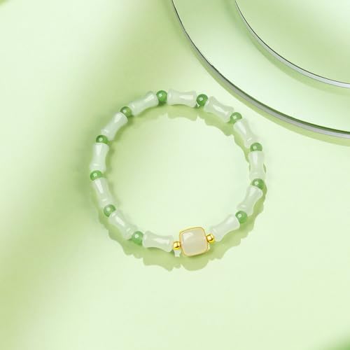 • Jade Bracelet: Stretch bracelet handcrafted with 9.8mm wide bamboo shaped green jade and 4mm round green jade beads, cushy and aesthetical enough for daily wear.Bring more luck for your daily life.(This 24K real gold green jade beaded stretch bracelet comes with extra 2 green jade beads and 1 stretch string, you can add more beads with the brand-new string to customize your own size)