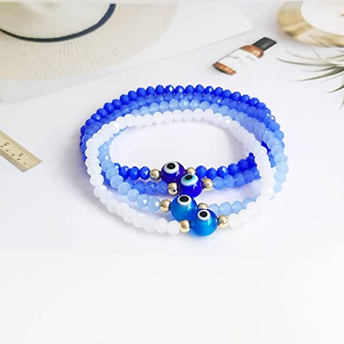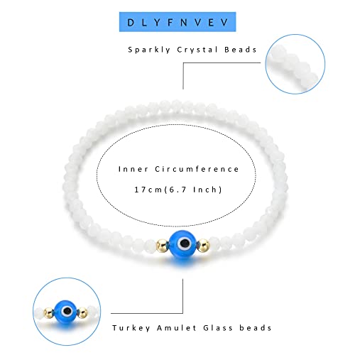 • Design: Gentle small crystal beads, delicate evil eye glass beads, 14k gold plated beads and elastic sting to adjustable size. multiple colors available: pink,white, green forest and blue ocean collection.