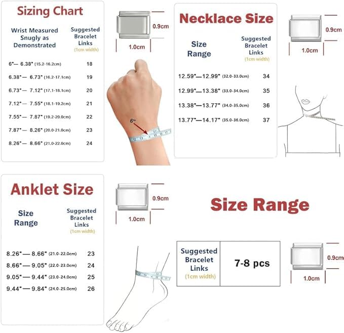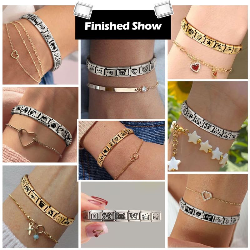 Material: Stainless SteelMetal type: Stainless SteelGem type: No Gemstone🎁Looking for a truly unforgettable gift for her? Personalizable A-Z letter modules for custom names or meaningful words. Each bracelet is a special piece with a personal message. Emphasize your style and personality for a unique wearing experience! Design your custom name or message bracelet now!✨Flexible design & easy repair: Removable modules for maximum customization: Thanks to the modular system, worn out parts can be easily replaced without having to discard the entire bracelet. Mix and match the 9mm accessories freely as a bracelet, necklace, or ring and create new looks every day.💟High-quality stainless steel material: The rust-free stainless steel of this Italian charm bracelet offers a long-lasting shine without tarnishing or rusting - even with daily wear, contact with water, or sweat. Simple maintenance with a soft cloth (without special cleaning agents) completes the practical benefits.💖Interesting combination: By adjusting the length, the Italian charms link module can be designed into rings, bracelets, necklaces, pendants, anklets, etc. Elements of different styles can be exchanged at any time to create unique fashion accessories.💐Customizable lengths: The elements of the removable module bracelet are usually variable in length. Users can adjust the length of the bracelet according to the size of their wrist and the required="required" wearing comfort to fully meet the needs and comfort of the wearer. Perfect for everyday use. first-class materials and excellent craftsmanship ensure long-lasting durability.