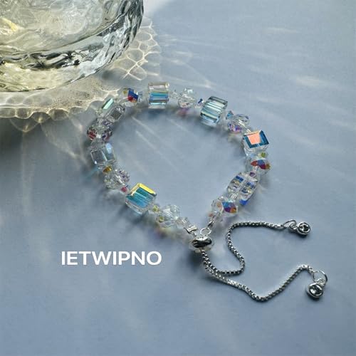 fresh Designed Iridescent Crystal Beaded Bracelet with Dangling Charms And Women's Gifts.The Sugar Austrian Crstal Bracelet is a Delicate Gorgeous Bracelet for Lady With Adjustable Elasticity (8mm Square White AB)