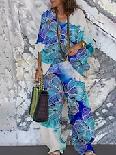 More information about Women's Vacation Fashion Pants Sets 3/4 Length Sleeve V Neck Butterfly Print Vacation Daily Holiday Blue Summer Regular Fit