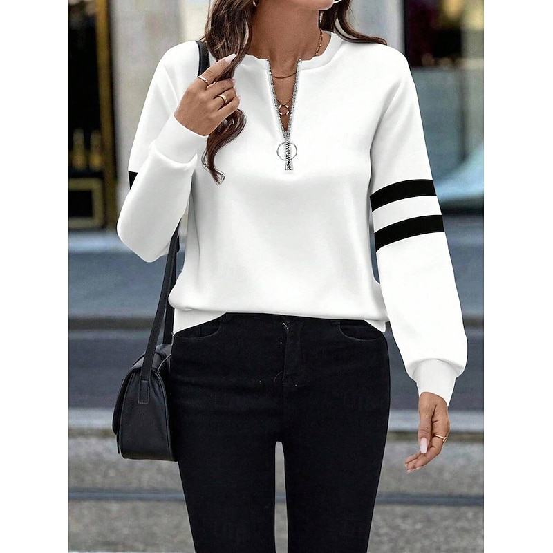 Why Choose Women's Pullover Sweatshirt Zip Up Sweatshirts Graphic Geometric Color Block Fashion Casual Long Sleeve Crew Neck Regular Tops Street Dailywear Zipper Print Black White Fall Winter?