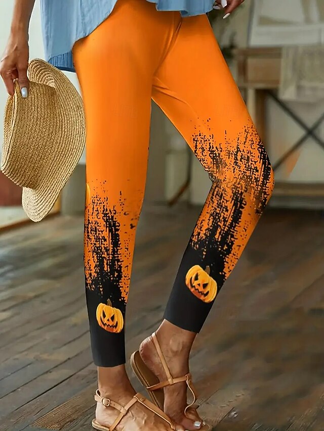Why Choose Women's Leggings Vacation Vintage Fashion Ankle-Length High WaistPantsHalloween Graphic Pumpkin Printing velvety Breathable Stretchy Formal Outdoor Vacation Black Orange Spring Fall Winter Slim Fit?