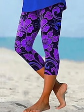 trending ! Women's Leggings Vacation Vintage Fashion Capris High Waist Floral Graphic Printing tender Breathable Stretchy Formal Vacation Office White Purple Summer Spring Slim Fit