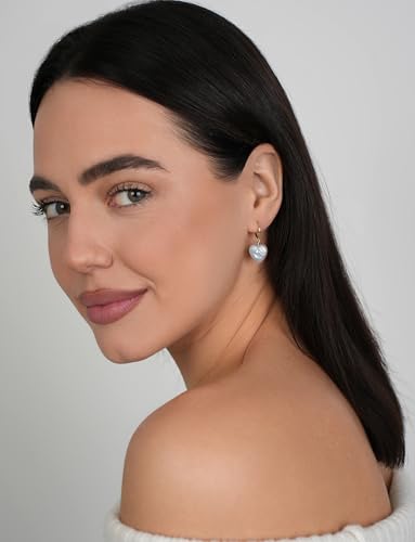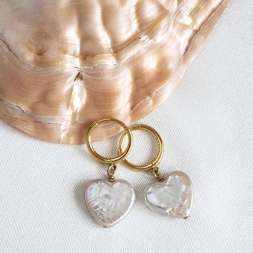 LILY LUSTRE 14k Gold Plated/Filled 925 Sterling Silver Handpicked AAAA Quality Natural White Freshwater Cultured Heart Shaped Pearl Huggie Hoop/Leverback Drop Dangle Earrings for Women