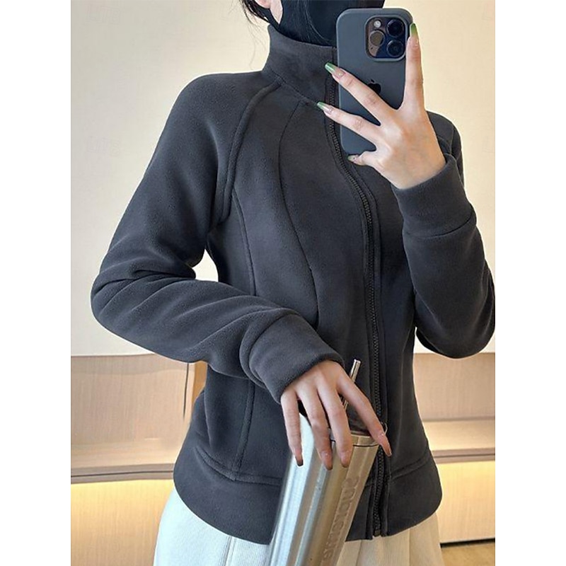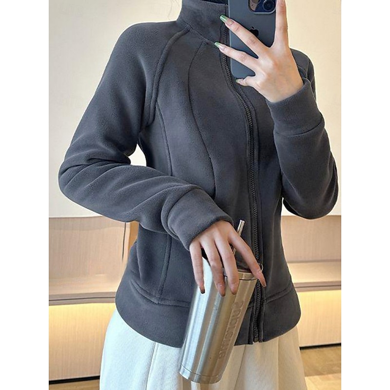 Why Choose Women's Sherpa Jacket Casual Jacket snug Breathable Zipper Casual Plain Vacation Street Casual Daily Wear Zipper Regular Stand Collar Regular Fit Long Sleeve Outerwear Black Pink Beige Spring?